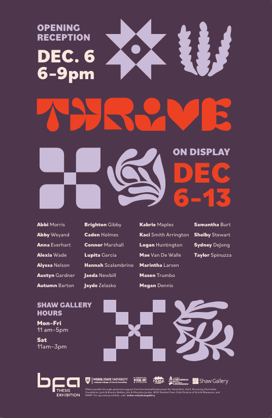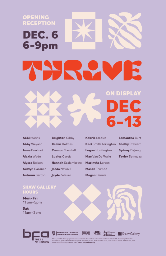Twice per year the Shaw Gallery at Weber State exhibits senior art student work. For the Fall 2024 show my fellow designers and I were tasked with creating the full event identity.