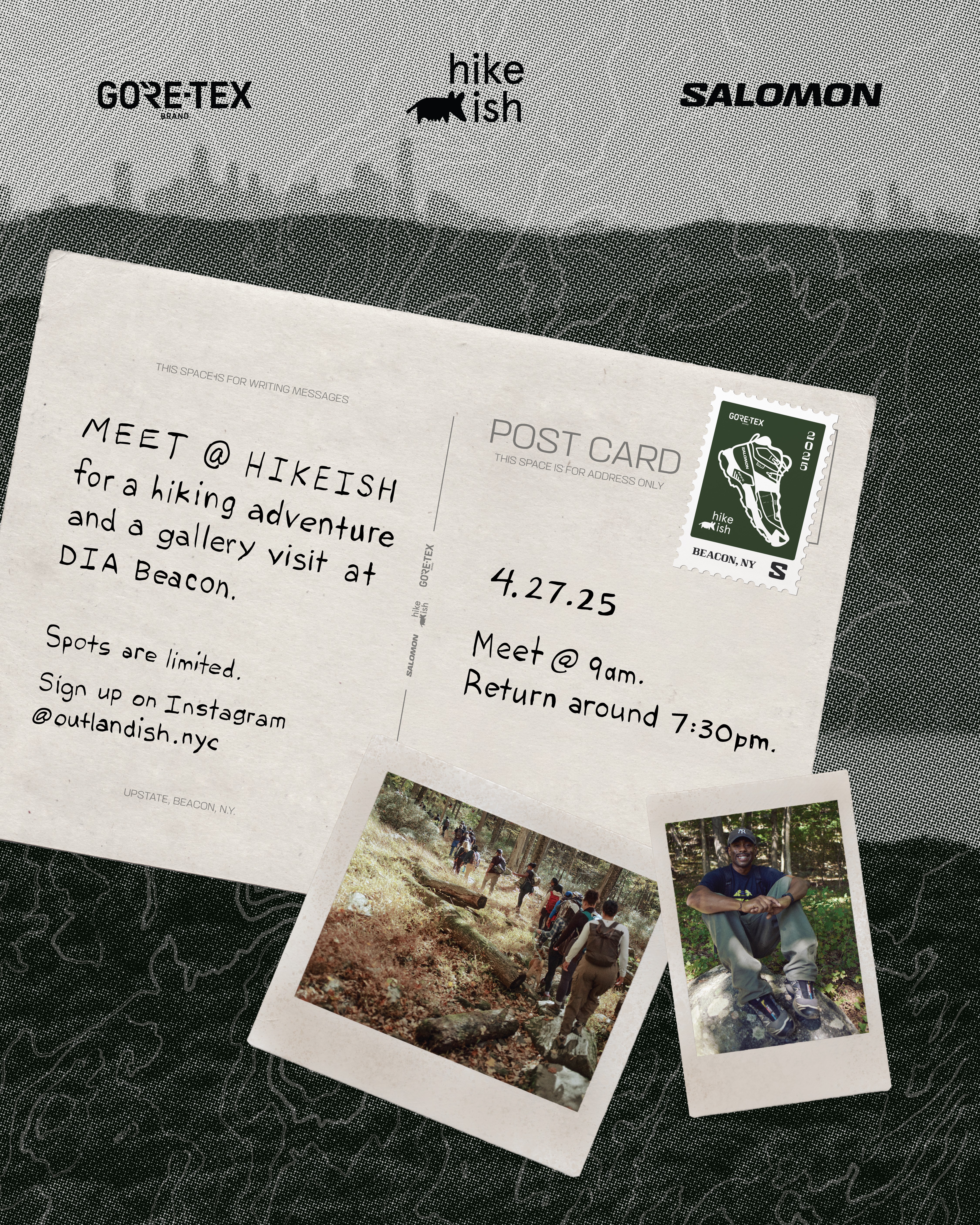Outlandish is a black-owned company that creates community-driven experiences rooted in nature and art. Once a year they collab with Salmon for an event called Hikeish in which people try Salomon's newest hiking boot, as well as enjoy nature and art in the lower Hudson region of New York.
